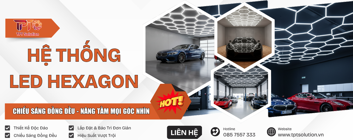 TPT Solution cung cấp giải pháp tối ưu hóa không gian chứ không chỉ là bán hàng. Chúng tôi tư vấn thiết kế Đèn LED Tổ Ong tùy biến theo kích thước Gara/Salon, và đảm bảo giải pháp sàn nhựa, ghế an toàn luôn phù hợp hoàn hảo với nhu cầu riêng biệt của khách hàng.