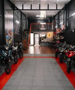 An toàn là ưu tiên hàng đầu. Bề mặt sàn được thiết kế với họa tiết nhám và độ ma sát cao, đặc biệt hiệu quả trong việc chống trơn trượt, ngay cả khi sàn bị ướt hoặc dính dầu mỡ. Điều này bảo vệ nhân viên và khách hàng khỏi những tai nạn không mong muốn, nâng cao tính chuyên nghiệp của Workshop.