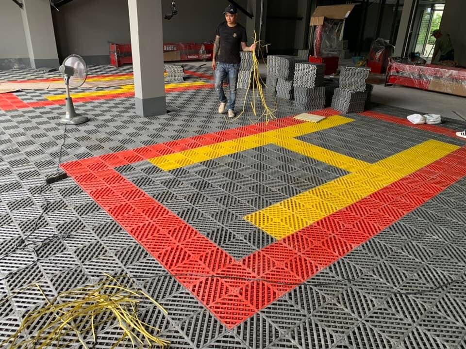 Với chiều cao 3CM, sàn nhựa tạo ra một bệ đỡ ấn tượng cho khu vực trưng bày xe, làm nổi bật giá trị của phương tiện. Tính năng thoát nước, chống trượt và chống hóa chất vẫn được duy trì ở mức cao nhất, đảm bảo sàn luôn sáng bóng và dễ vệ sinh.